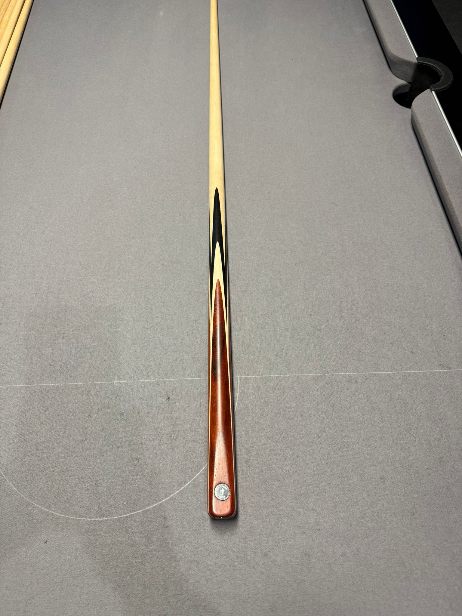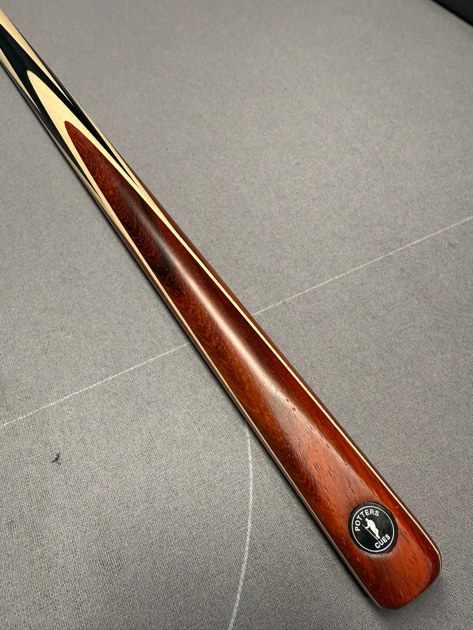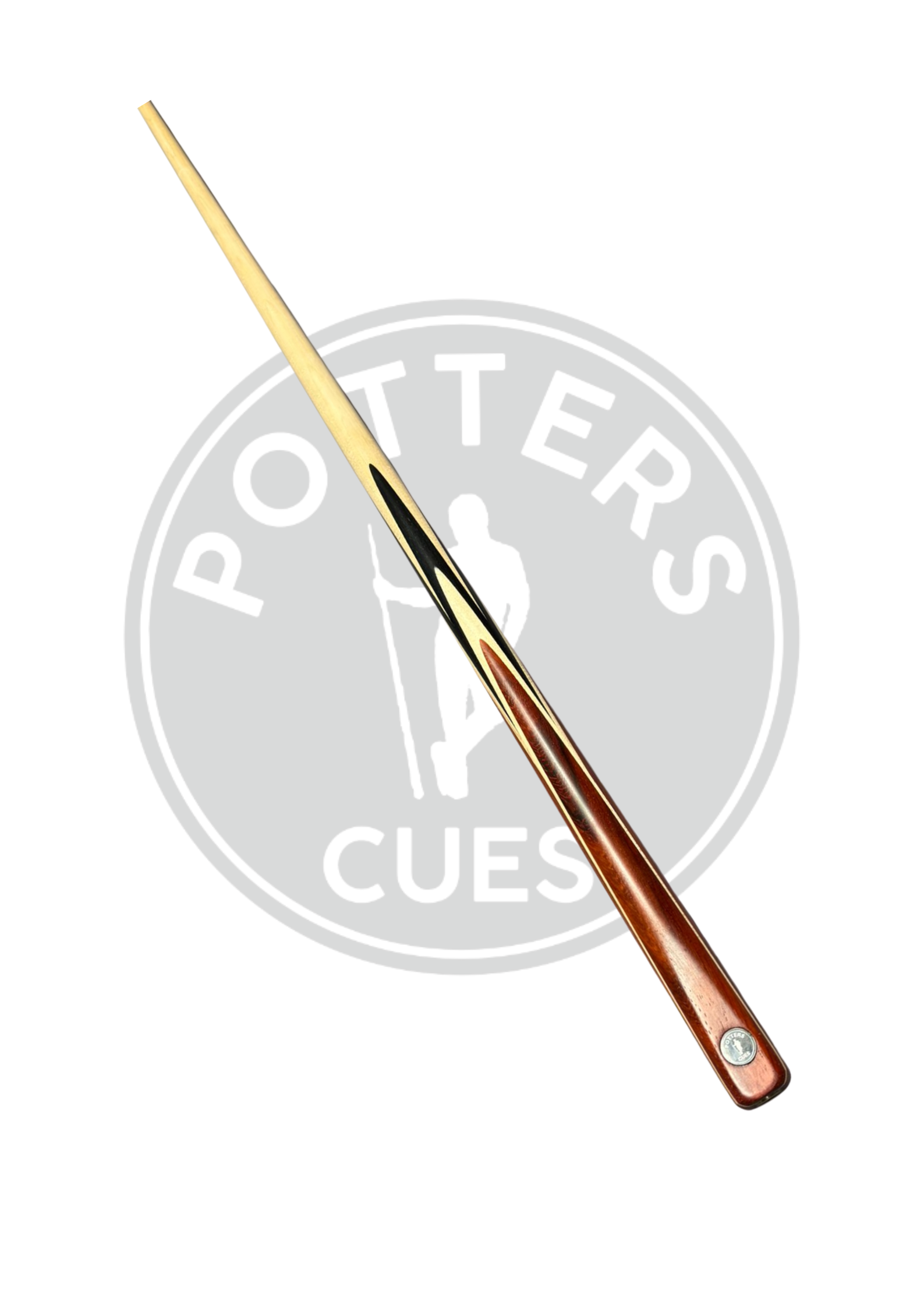 Potters Maple 1 Piece Cue: Length 57.5”, Tip 9.5mm, Weight 18.3oz. 1 Piece Spliced Maple Cue with 6 inch Mini Butt
